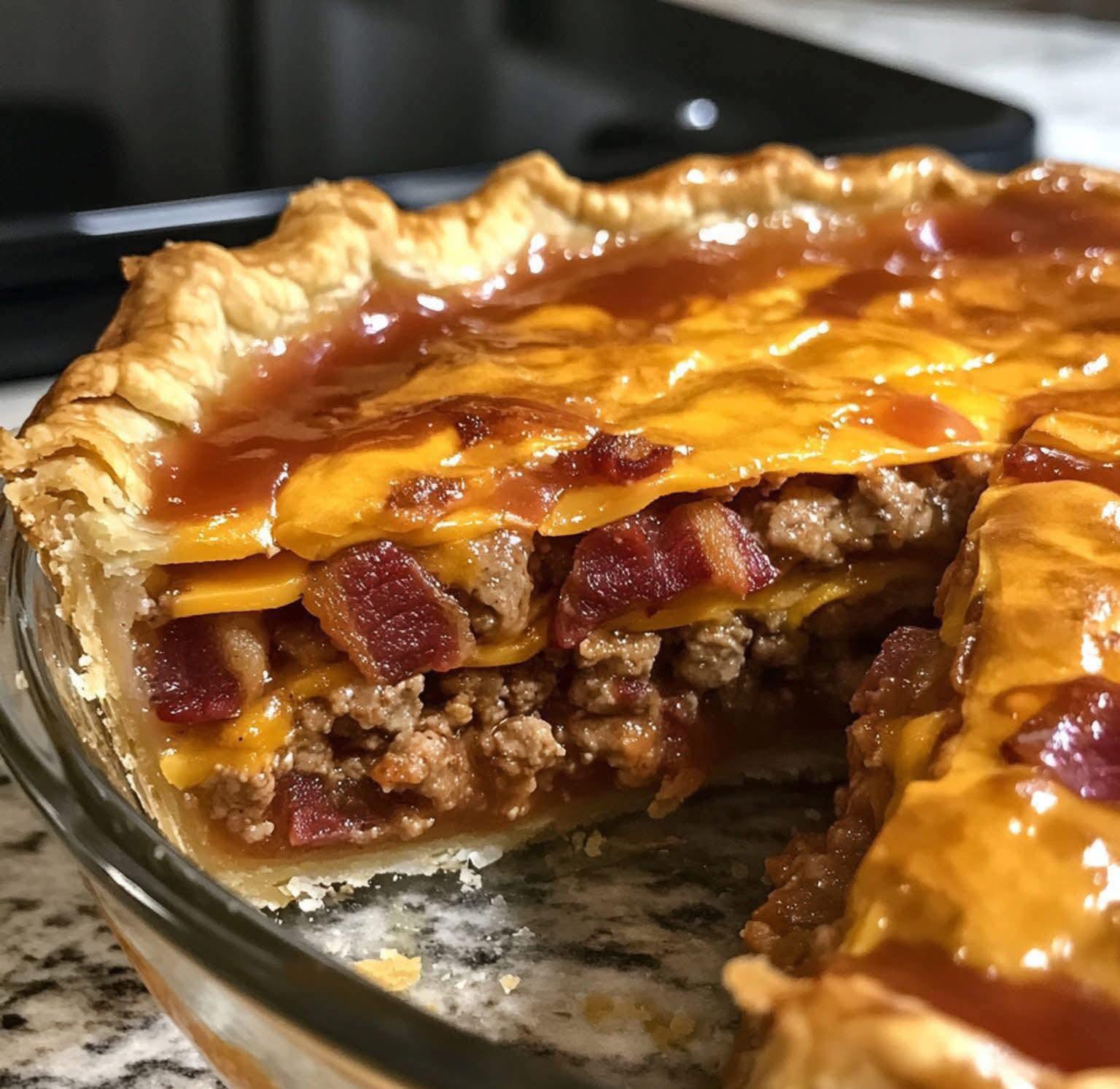This pie combines the flavors of a classic cheeseburger — savory beef, crispy bacon, tangy condiments, and melted cheddar cheese — all baked inside a buttery pie crust. It’s perfect for weeknight dinners, game-day meals, or anytime you crave a hearty, comforting dish.